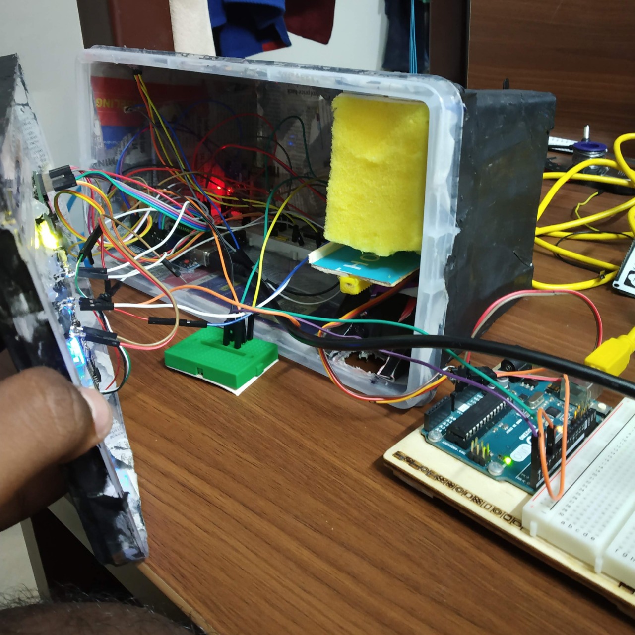 This project was aimed to create a fully portable and smart system that secures a wardrobe and also provides many other features. This IOT device can protects the key of a wardrobe instead of meddling around with the locking mechanism. It logs status, analog data to the cloud gives smart clothing suggestions with respect to outside temperature, gives email alerts in case of a security breach and send a buy link regarding the clothing suggestion. This entire system is further accompanied by a companion Android app It was ranked third in the VIT-AP Engineering Expo.