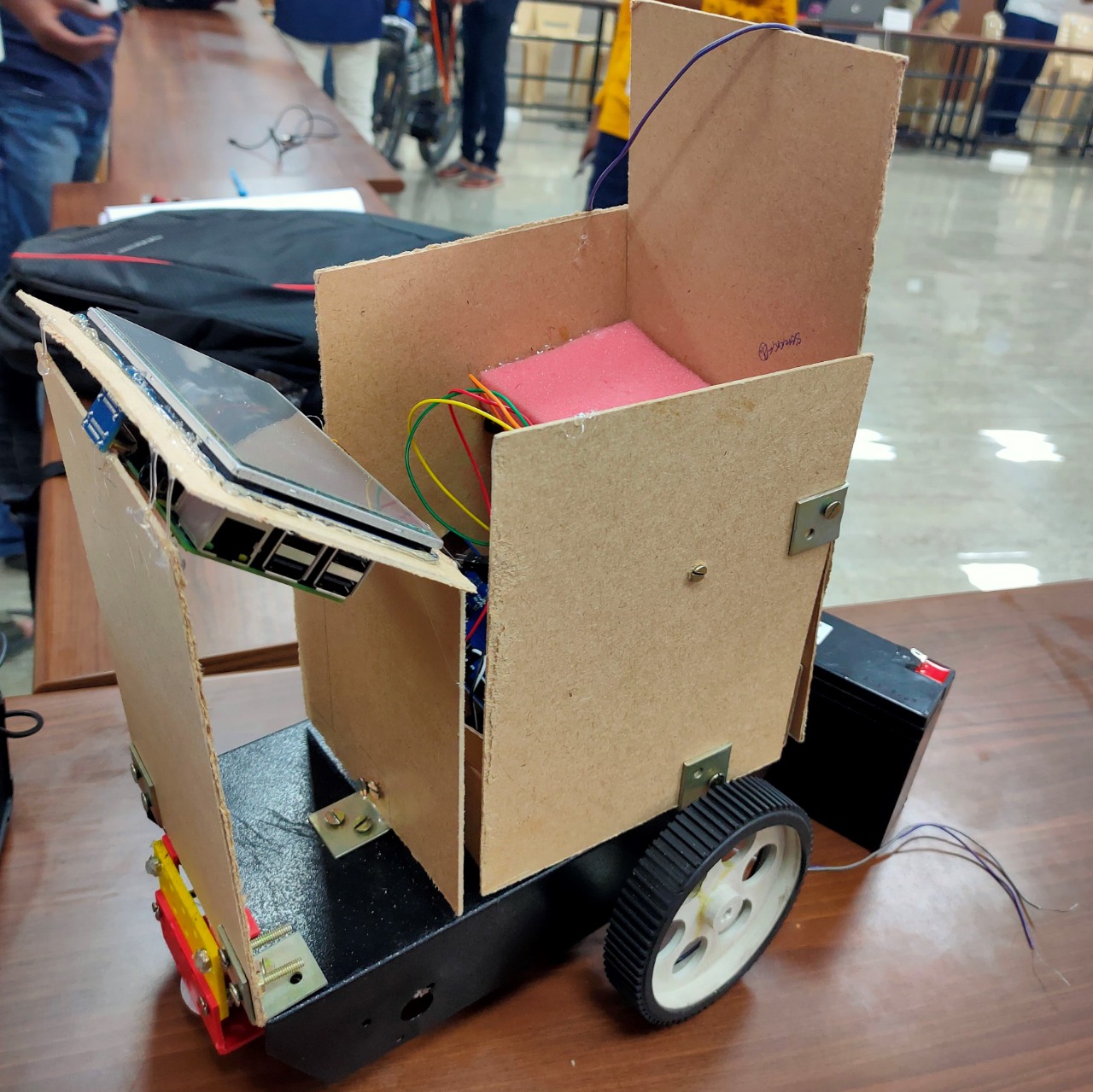 This project was aimed to help the paralyzed or physically challenged people to have better communication and mobility in the real world. The brain controlled wheelchair is designed to move in all four directions with respect to the signals received by the brain using a EEG machine.The wheelchair also features a keyboard layout which allows the user to communicate using brain signals and express their thoughts. It was ranked First in the VIT-AP Engineering Expo.